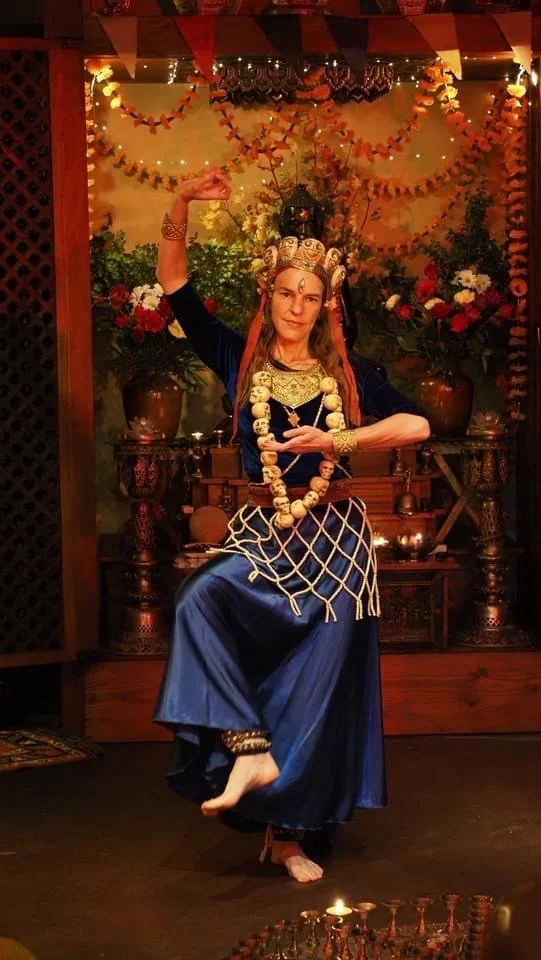 My journey into the interconnected realms of Yoga, Tantra, and the Sacred Feminine began in 1998 when I discovered the book, ”Yoga: The Iyengar Way." Amidst the challenges of life after college, yoga emerged as a beacon of solace and self-discovery. Initially, yoga served as a tool to overcome my body image insecurities and shyness, but my fascination soon deepened as I delved into its vast philosophical and mystical dimensions. Over the years, I became immersed in yoga research, captivated by the spiritual liberation and awakening pursued by male yogis and saints. However, I continued to struggled with teachings that portrayed women as distractions from spiritual enlightenment or worse. This amplified a sense shame regarding my female body and caused confusion around my natural desires for intimacy as well appreciation of art and beauty and things of the material world. Ultimately, my practice of yoga, dance, bhakti and tantra helped me find a deep sense of self acceptance, love and appreciate my physical form, and find refuge within my own skin.